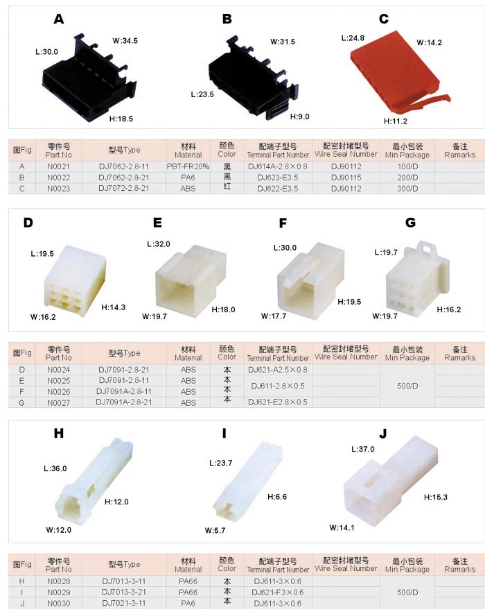 连接器系列 插片系列 插簧系列 保险丝端子 仪表端子孔式接头 孔式接头、接线片系列 连带端子系列 塑料件系列
